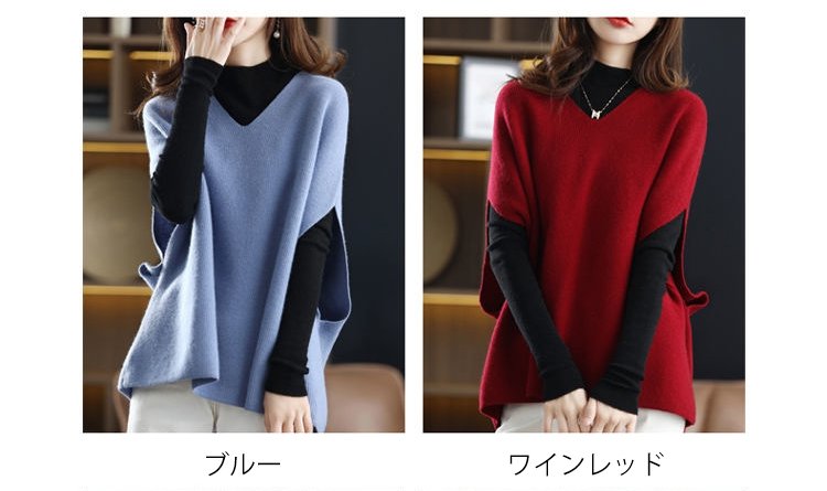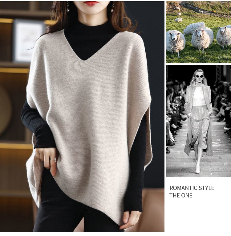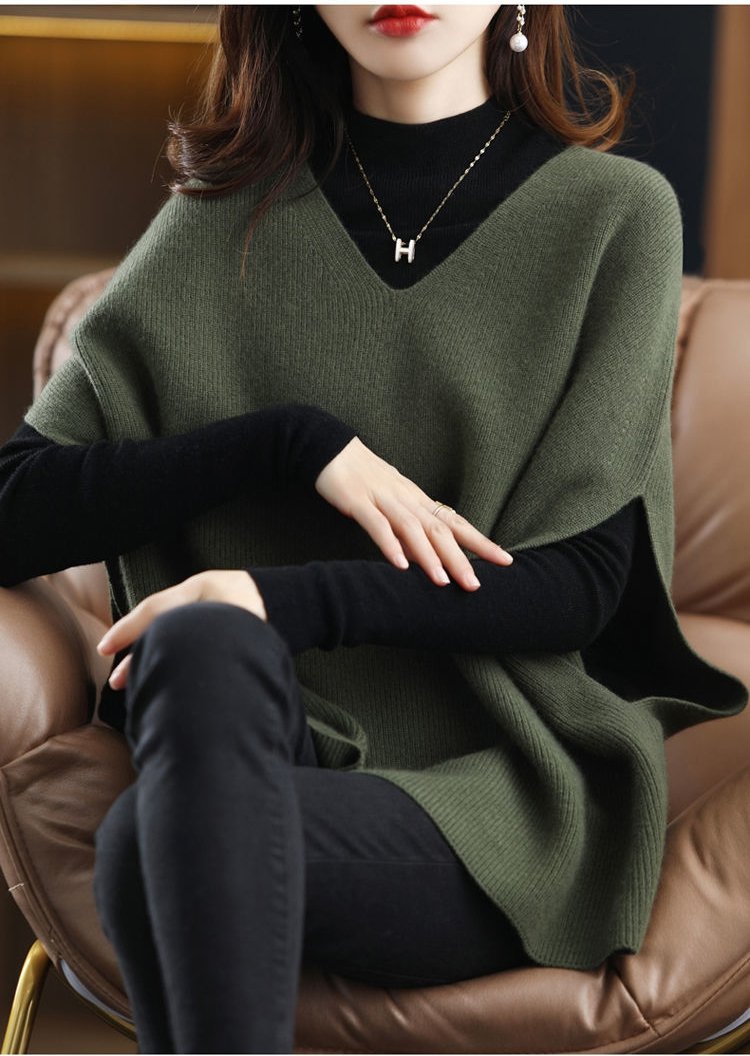 Vネックバットウィング・スリーブのウールベスト